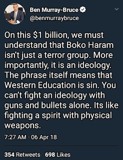 The senator representing Bayelsa East senatorial district in the National Assembly, Sen. Ben Murray-Bruce, has said that the $1 billion security fund to fight Boko Haram will not achieve its aims if the ideology behind the group is not tackled.