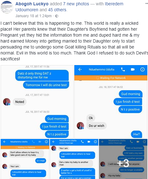 According to him, the man was even forced by the girl’s family to do some fetish sacrifices after the marriage.