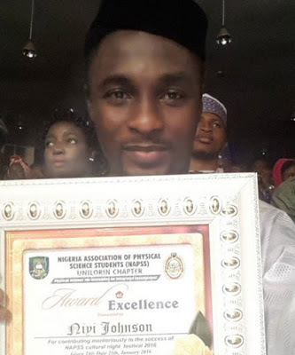 Actress Toyin Aimakhu’s ex, Adeniyi Johnson was recently honored with excellence award certificate by the Nigeria Association of Physics Science Student of the university of Ilorin.