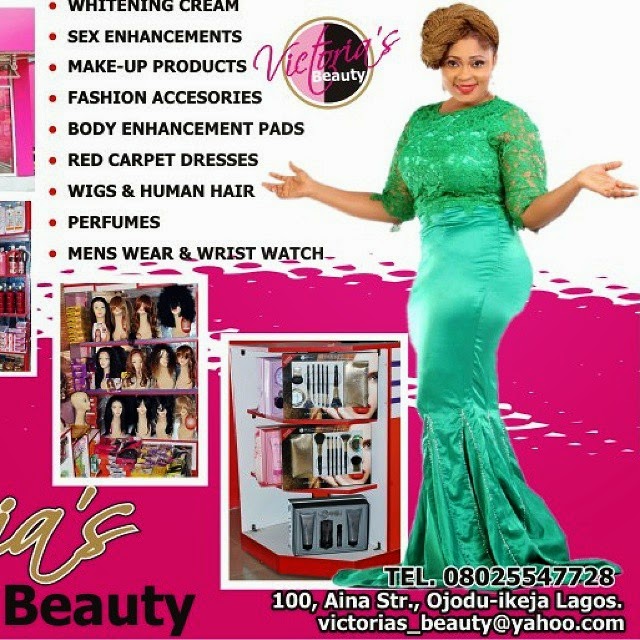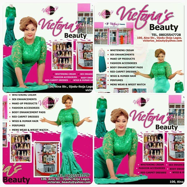 Another actress who is joining the list of business owners (for the second time) in Lagos is Biodun Sofuyi Okeowo aka Omo Butty. She will be opening the doors of her new beauty store, Victoria’s Beauty to customers, friends, colleagues and the general public at the official launching on Sunday May 3, 2015 (tomorrow) at the Ojodu area of Lagos State.