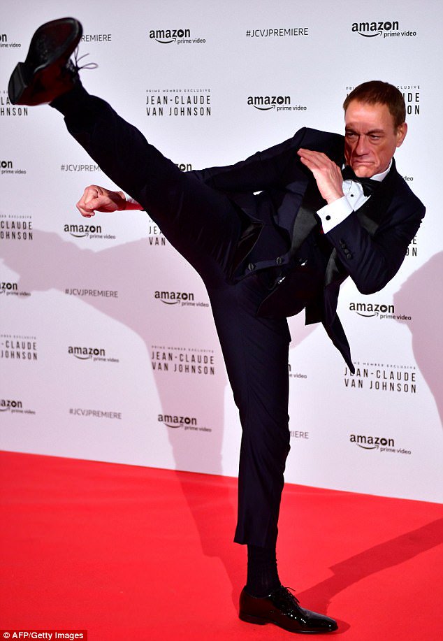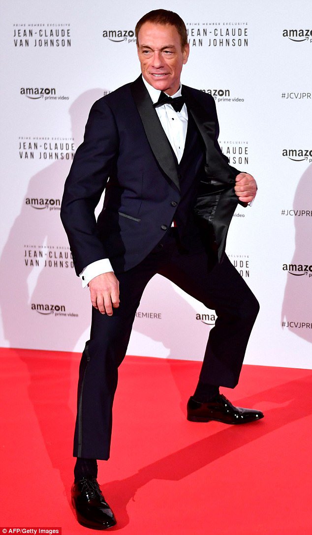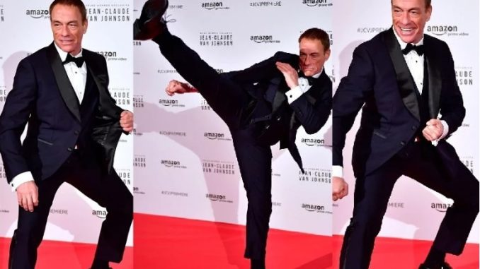 The 57-year-old actor who made his breakout role in 1988’s Bloodsport, showed off his legendary martial arts moves, in a black tuxedo on the red carpet.