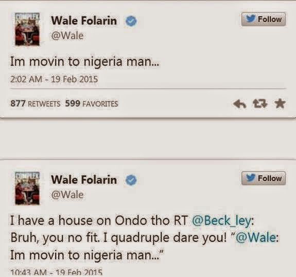 Nigerian-American rapper, Wale Folarin is planning to move back to his father land, Nigeria.