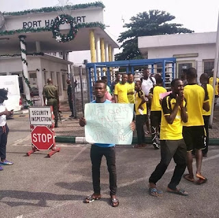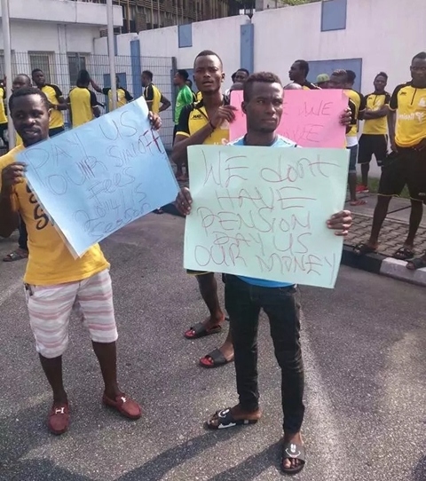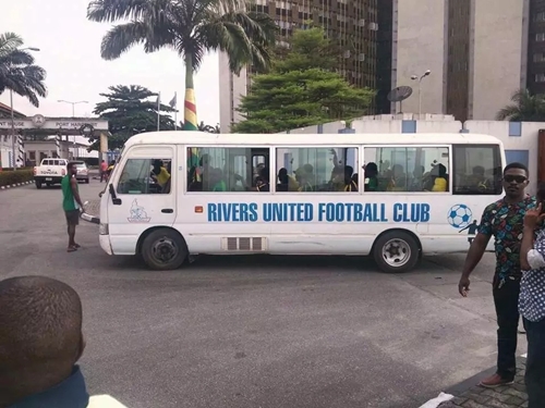 Rivers United Football Club players, on Tuesday morning, December 19, stormed the Rivers state government House in Port Harcourt to demand the payment of their 2014/15 sign on fees from the Rivers state government under the leadership of Governor Nyesom Wike.