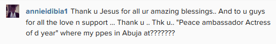 The ever smiling wife of TuFace Idibia shared the good news on her instagram page yesterday, after she received the award in Abuja.
