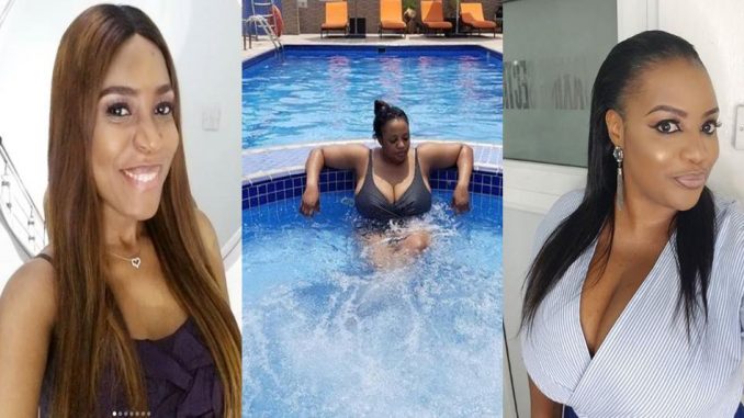 My sister, no be pool, it’s called jacuzzi J.A.C.U.Z.Z.I. and you sit in a jacuzzi. Moreso, I’m I expected to wear Iro and Buba here? This is a picture of you and I in our swimsuits. The only difference is in the size of our boobs. My sister, contact Dr @grandvillemedlaser if you want yours bigger. Your obsession with my boobs got to stop. Afterall, if you don’t have it, you buy it! It’s becoming a noise.”