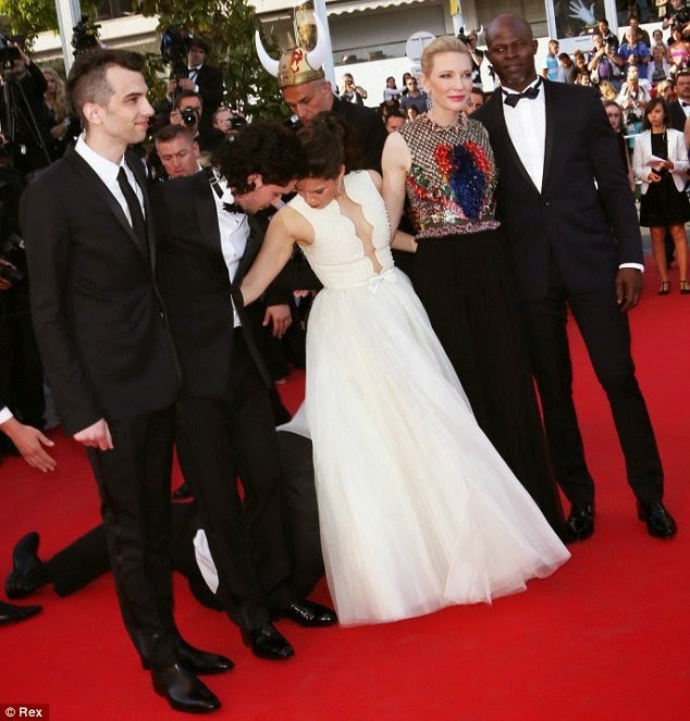 A Ukrainian journalist created an awkward scene at the Cannes Film Festival. The funny guy ran towards the red carpet and sneaked under actress America Ferrera’s dress as she posed for pictures with her co-stars on the red carpet.