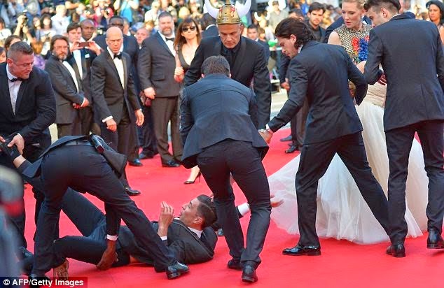 The horrified actress looked on while security whisked the “awkward” guy away….lolz