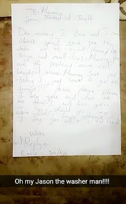 Aww.. See the cute request note Basketmouth’s son gave his mum