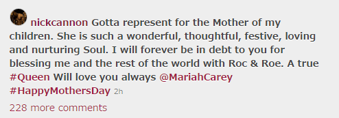We all know today is mother’s day in the United States, and many celebrities took to their social media pages to celebrate all the women in their lives. Check out Nick Cannon‘s sweet message to ex-wife, Mariah Carey on mother’s day…