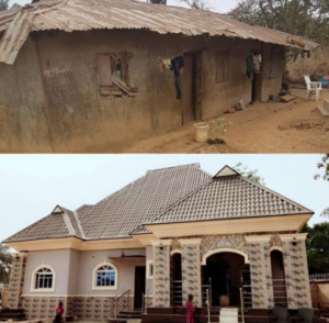 That I don’t wear expensive hair. Well my darlings I do know and want to wear those things but I have been saving for this building right here. I can’t remember d last time my family travelled for Xmas because their is no house to stay. My mother falls sick whenever she goes for August meeting and comes back. My father wanted to sell half of our compound to fix d leaking roof, buy ceiling and also patch the broken wall but I told him No. ( PAPA I WILL BUILD HOUSE FOR YOU) after saving for sometime, I wanted to use the money to buy myself another car (A bigger car) but I said to myself, what’s d need for d car when we don’t have roof over our head in d village moreover the car I have is still in good condition and serves me well, I can always buy another one later. Today am grateful to Almight God that it came to pass. My parents are d happiest ppl on earth. 4 masters bedroom, extra 2 toilets, kitchen, dinning and palour. God is the Greatest.”
