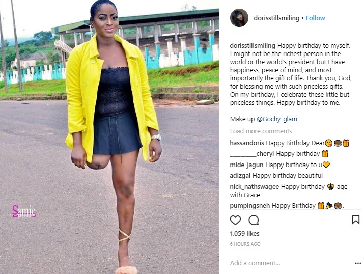 A beautiful lady celebrated her birthday with a bold photo showing off her stump.