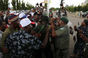 BREAKING: BLOODY!!! Bukola Saraki, Uche Secondus, Dino Melaye, Others, Attacked With Teargas, During Peaceful Protest, Allegedly