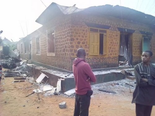 The burnt police station in Anambra. Photo: Tony Okafor.