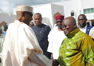 President Muhammadu Buhari on Tuesday met behind closed doors with Ghanaian President, Nana Akufo-Addo, at the Presidential Villa, Abuja.