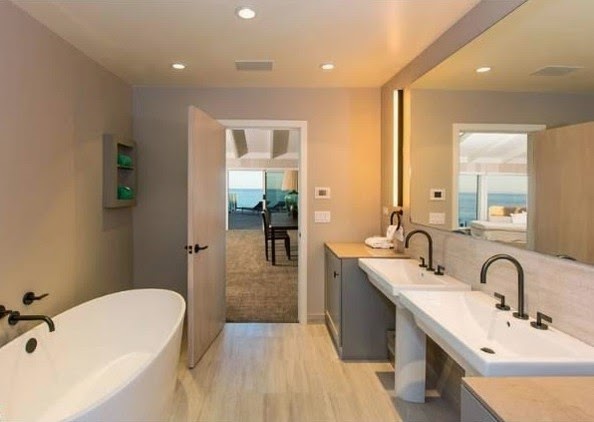 The beautiful songstress must sure love a large space. Her Florida mansion’s bathroom is designed with a tub at its centre and an oversized shower.