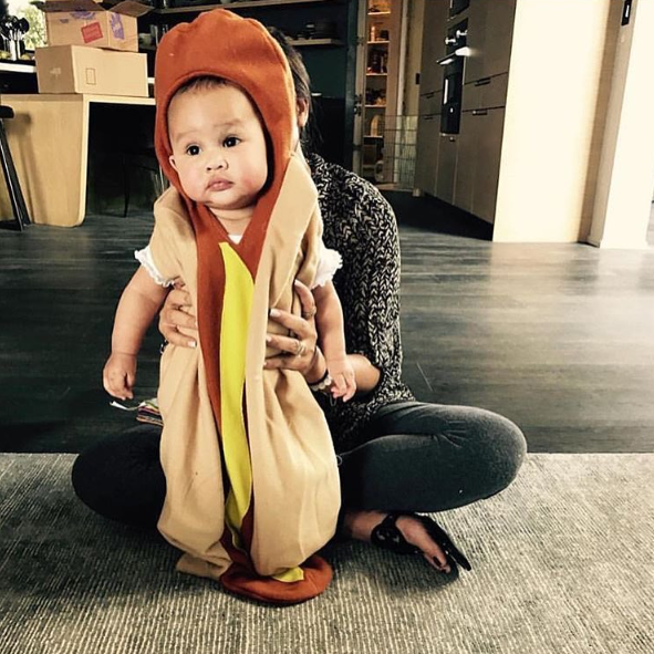 Model and John Legend’s wife, Chrissy Teigen, dressed their daughter, Luna up in 3 Halloween costumes. As a hotdog, then as a Peacock, then as Minnie Mouse. More adorable photos of Luna after the cut…