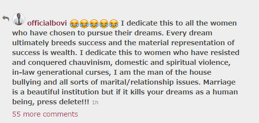 In my opinion, it is better for a woman to be single and happy than to be treated like a goat in a releationship. I am definitely one of the few women out there who frowned at domestic violence. See what comedian Bovi got to say about it below…