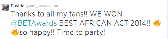 Congrats! Davido Wins ‘Best African Act’ At BET Awards 2014