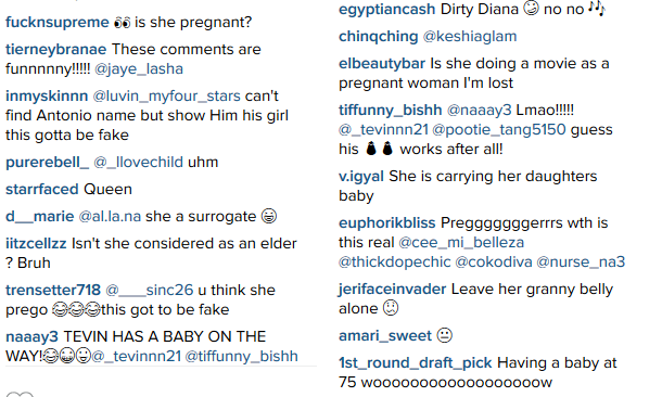 People of this generation got zero chill (Lol). They started asuming the 71 year-old icon is preggo, after she was spotted with a protruding belly in LA. See funny comments below and after the cut…