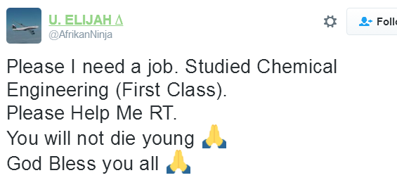 First Class Chemical Engineering graduate comes on twitter to beg for a job