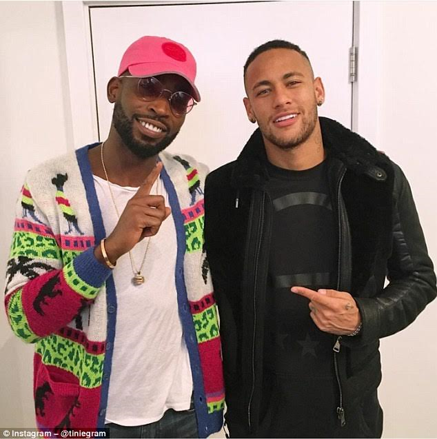 One of UK’s finest rappers Tinie Tempah took to his Instagram page to share a photo of him and football star Neymar as they met in a London restaurant for a promotional campaign by sports wear giants Nike. Writing on his Instagram page, Tinie thanked Nike for arranging the meet, saying: ‘Met up with the don @neymarjr in London today. Big up @nike for the link up.’