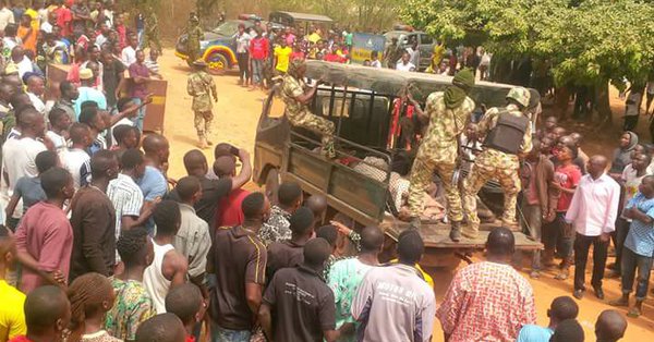 The youths were protesting for them to be killed, that led to another brouhaha, the men of the Nigerian Army were called into the scene, when they arrived, the youths were still demanding for them to be killed, it brought about an altercation between the army nd youths, the army fired heavy gunshots into the air to clear further disagreement.