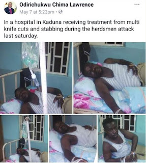 ‘In a hospital in Kaduna receiving treatment from multi knife cuts and stabbing during the herdsmen attack last saturday’