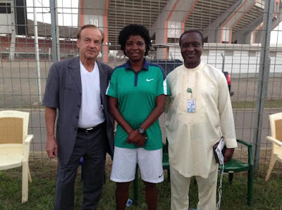 Super Eagles chief technical adviser Gernot Rohr was pictured attending the Super Falcons of Nigeria friendly game against Ilerika boys on Monday evening. He also took photographs with the team’s coaches Florence Omagbemi and Perpetua Nkwocha.