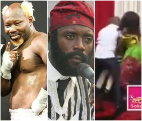 Michael Okine, a Ghanaian boxer, popularly known as Ayittey Powers, was caught beating a comedian, Baba Spirit, during a live interview on an Accra-based TV station.