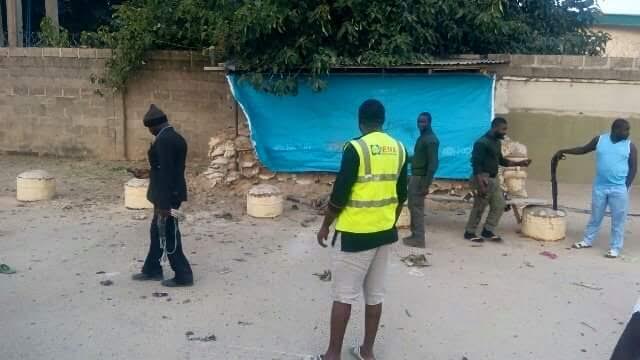 Two female and one male suicide bombers who had IEDs strapped on them, had attempted to attack a checkpoint close to the Federal High Court Complex in Maiduguri when they were sighted and stopped by vigilant police officers. One of the female suicide bombers detonated the IED on her killing her and the male suicide bomber. The other female suicide bomber was arrested and has been handed over to the military for questioning. More photos after the cut.