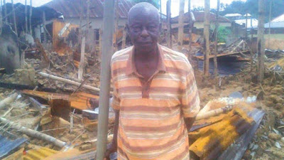 The Village Head of Akim Akim, Chief Ita Bassey, (pictured standing dejectedly in front of his torched house in Odukpani Qua Town) said,