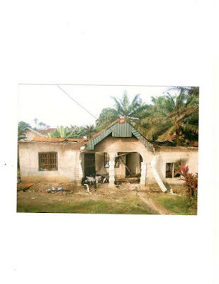 The Village Head of Akim Akim, Chief Ita Bassey, (pictured standing dejectedly in front of his torched house in Odukpani Qua Town) said,