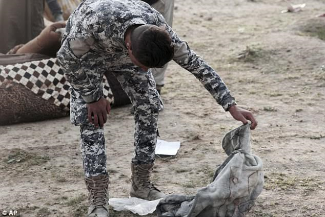 The image of the girl, wrapped in a blanket highlights the horrific reality of the crimes ISIS carries out against civilians in the area. The terror group carry out mass executions from time to time even for ‘crimes’ as minor as trying to flee the troubled city to a safer place. Iraqi fighters discovered the mass grave in which was buried adults and children covered with blankets as they made further inroads in their battle to reclaim Mosul from ISIS. The progress of the soldiers was slowed by car bombs and booby-traps in houses and alleyways but they had made significant gains in recent days.
