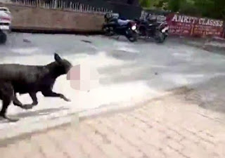 A horrific footage captured a stray dog ‘in a street with a newborn baby in its mouth’, and feeding it to its puppies outside a hospital in the village of Gopalganj in Madhya Pradesh state, India.