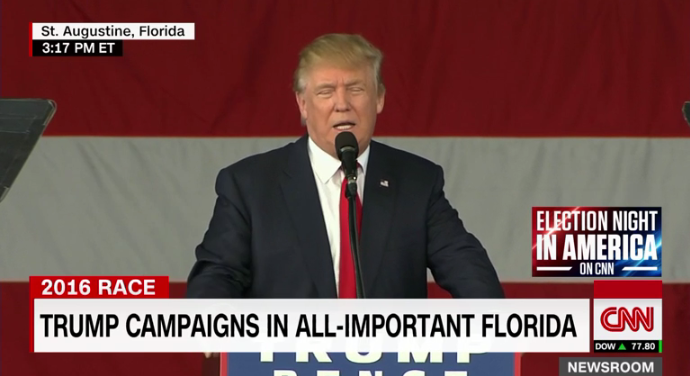 Donald Trump  on Monday told a crowd of supporters in Florida that he is in the leading the White House race in polls, telling them to forget reports by the main stream media such as CNN who in a recent poll said Clinton was passing Trump by 5% among likely voters..