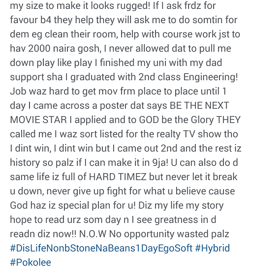 Hmmm.. Life could either be easy or hard, it depends on how we view it and live it. Anytime I see Tonto Dikeh summon up the courage to share her story before glory, I often marvel at her humility because many of her colleagues who have been through the same fate could harldly come out boldly to share their story, they often claim to be born with silver spoon (as if it is a shame to rise from nothing to something). Kudos to Tonto for encouraging other people out there not to lose hope, no matter what they are going through. Read her caption below…