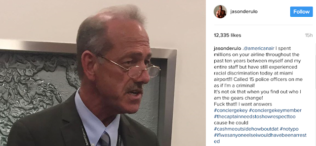 Singer, Jason Derulo has called out American Airlines, saying they are racists as he was disrespected and cussed out by his pilot and also confronted by 15 cops after a heated incident at Miami International Airport.