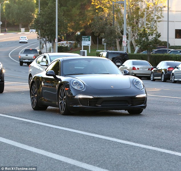 Rapper, Kanye West was seen at his office in Calabasas, where he drove off in an exquisite new Porsche. Another photo after the cut..