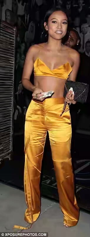 The 28yr old showed off her trim and fit frame as she stepped put for a night out on Hollywood dressed in a satin gold-coloured bra and matching trousers. She recently had to hit back at social media trolls who claim that she is famous because she dated Chris Brown. In a recent interview with Kode magazine, the actress responded: