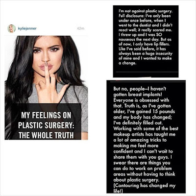 The 18 year-old reality star and model took to her App to share her thoughts on plastic surgery. Y’all know she’s been accused of having jobs done on some of her body parts on several occasions.
