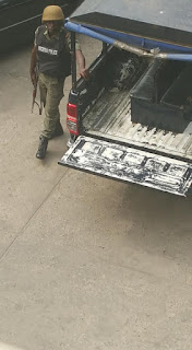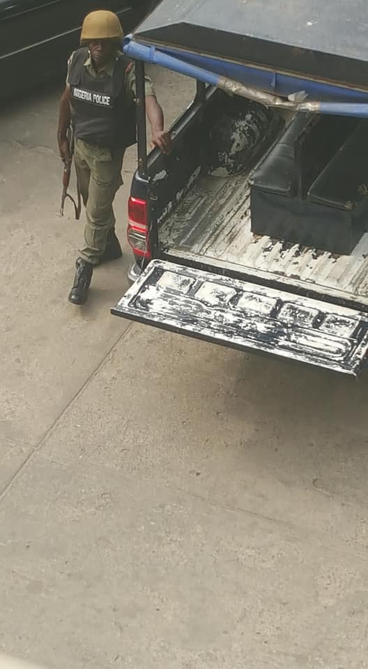 Fellow Nigerians pls see this annoying show of shame… all these police n mopol followed their Oga’s wife to make her hair in poly plaza Abuja. .. what a waste of tax payers money and govt resources. 1 human being! So annoying, so wrong. The rest of us don’t matter right???