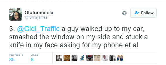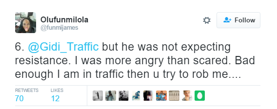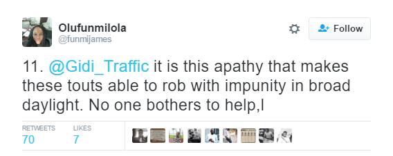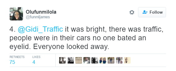 Is it because of fear? Or the ‘it does not concern me attitude’? A Nigerian Lady took to social media to narrate her experience with a traffic robber while heading towards Chevron roundabout, Lekki Expressway.