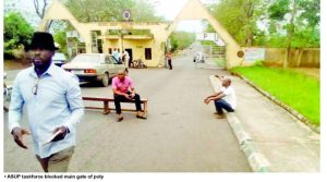 Determined to ensure total lockdown of the polytechnic until their demands were met, the ASUP taskforce blocked the entrance gate of the polytechnic. The angry lecturers only allowed non-academic staff to gain entrance into the campus.