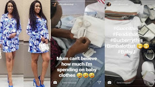 Taking to her Instagram story, she also shared photos of some of the designer clothes she’s already buying for her baby boy, to the surprise of her mum who can’t believe the extravagant cost of them.