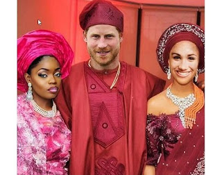 Sharing a photoshopped image of herself and the royal couple in Nigerian traditional wedding attire, she wrote: