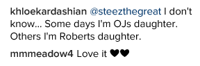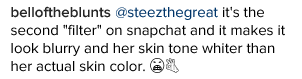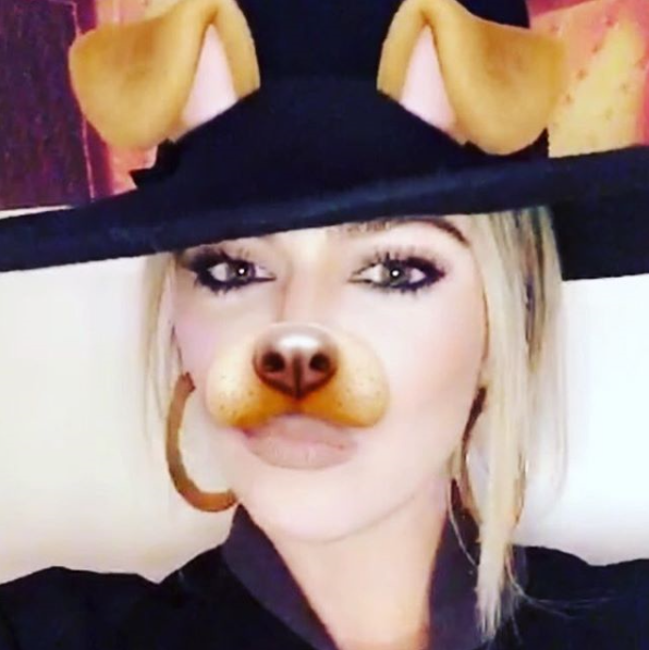 Khloe Kardashian shared this Snapchat ‘Dog’ filter on her IG page and one of her friends/acquaintance said he wondered why Khloe looked white and Khloe responded by saying… Read her response and the response of other fans after the cut…