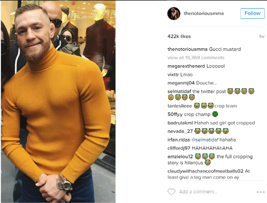 “If you’re having a bad day just remember @TheNotoriousMMA cropped me out of our photo”