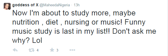 Mention the name Maheeda anywhere and the first thing you will hear people say is ‘the nudist’. Oh well, the 32 year-old singer/ nudist have gone ahead to add another feather to her cap, and while at it, she advised her fans not to be fooled by her personality… See her tweets below