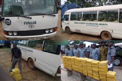 A bus belonging to the Federal University of Agriculture, FUNNAB, Abeokuta has been intercepted and the driver arrested by operatives of the Nigeria Customs for conveying Indian hemp through a border town in Ogun State.