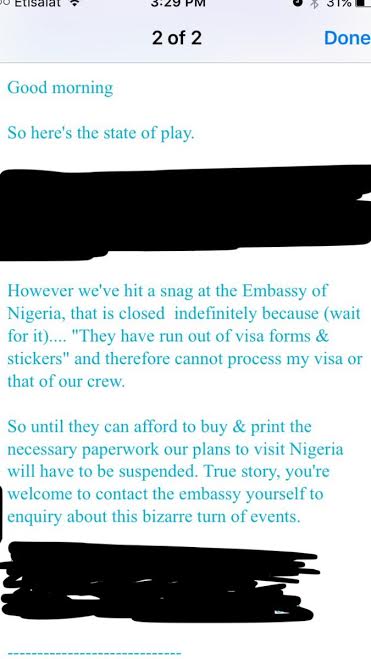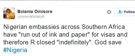 Nigerian embassies in Southern African countries have reportedly closed indefinitely over lack of materials for processing for visa. This is according to some Nigerians who tried to get a visa